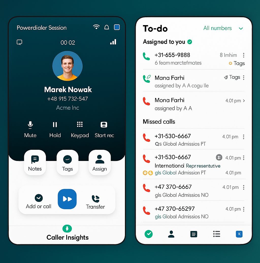 Collaborate on calls through the shared inbox, apply tags or comments, and assign follow-ups to specific teammates.